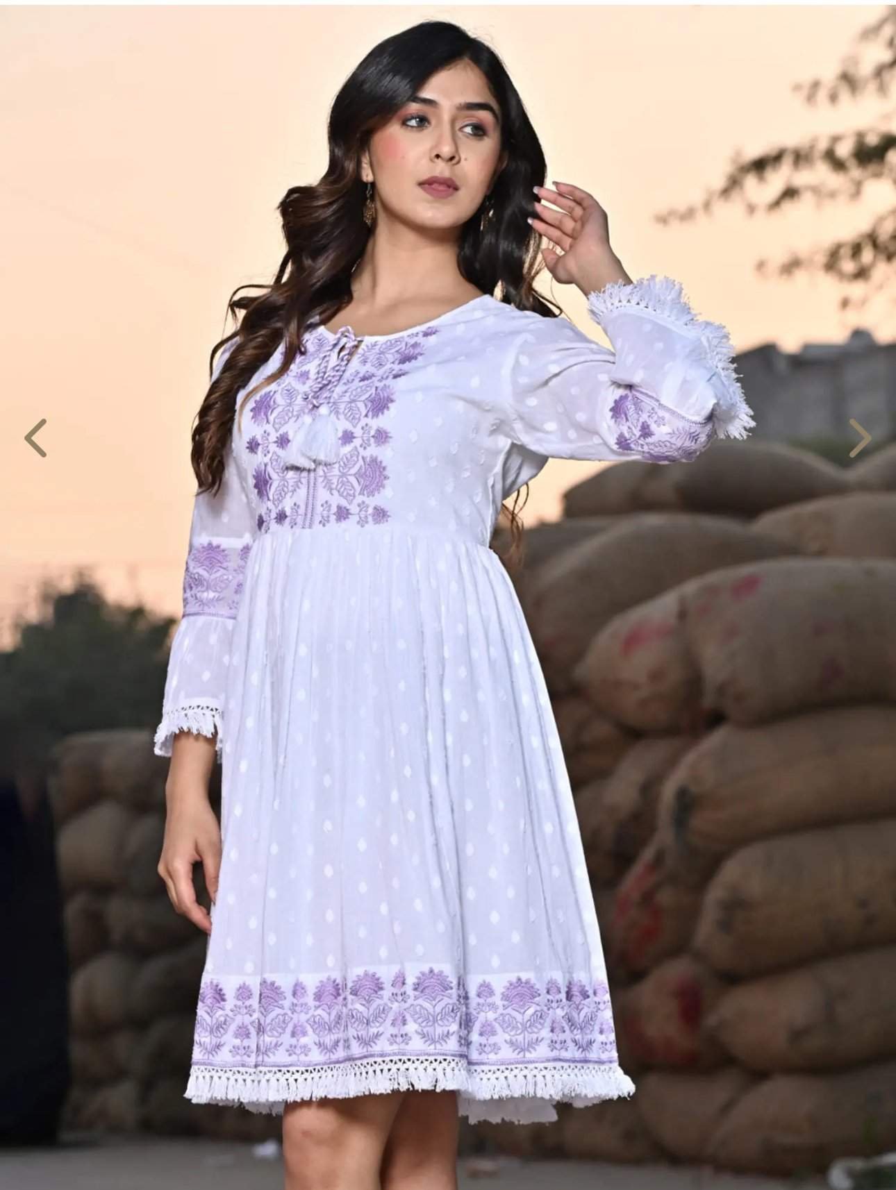 Anarkali 3pc suit₹2,999.00Original price was: ₹2,999.00.₹1,399.00Current price is: ₹1,399.00.white A-line dress with purple floral embroidery