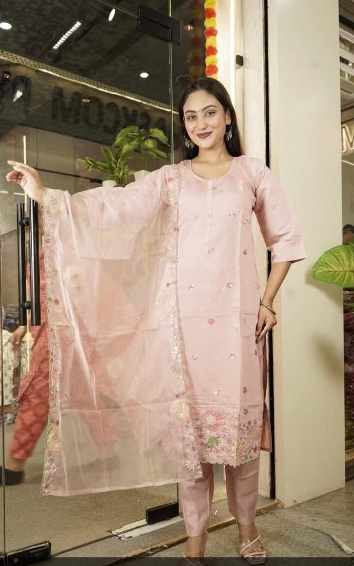 Women’s Vibrant Red Floral Embroidered Suit Set with Dupatta