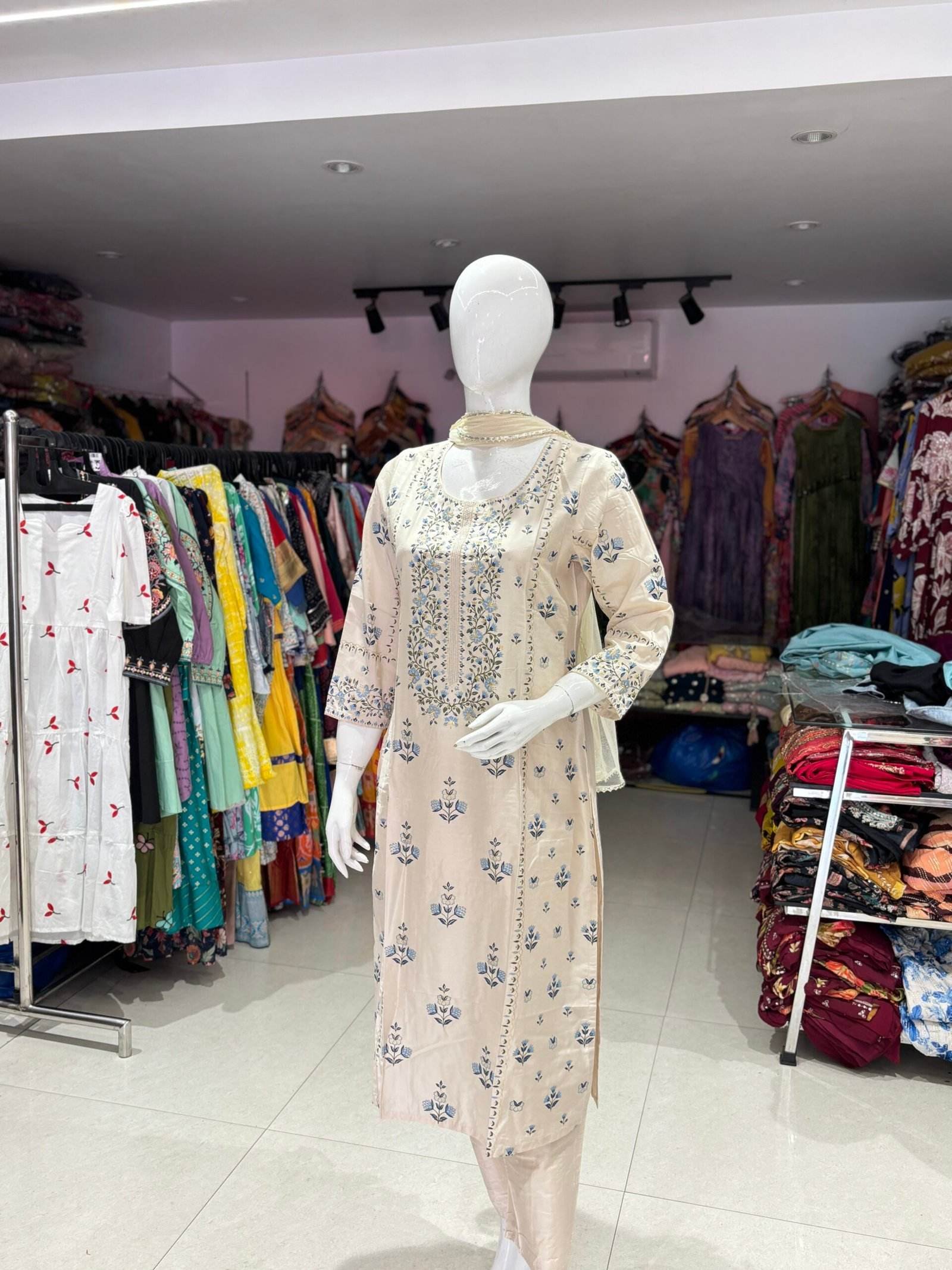 - Fabric: Typically Tissue Silk for the salwar and dupatta, and Art Silk for the straight pants.