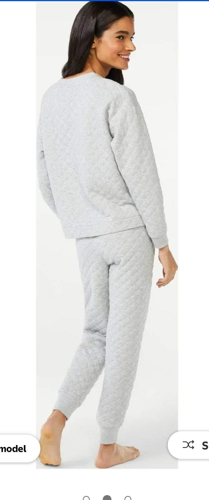 - Features: The set includes a long-sleeve, crew-neck top and matching jogger-style pants, both featuring a quilted texture.