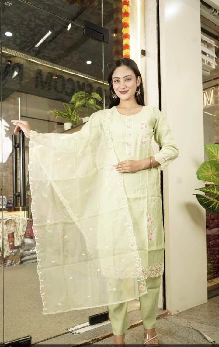 - Style: The outfit is a straight-cut kurta with trousers and a dupatta, a popular style for everyday ethnic wear and festive occasions in India.
