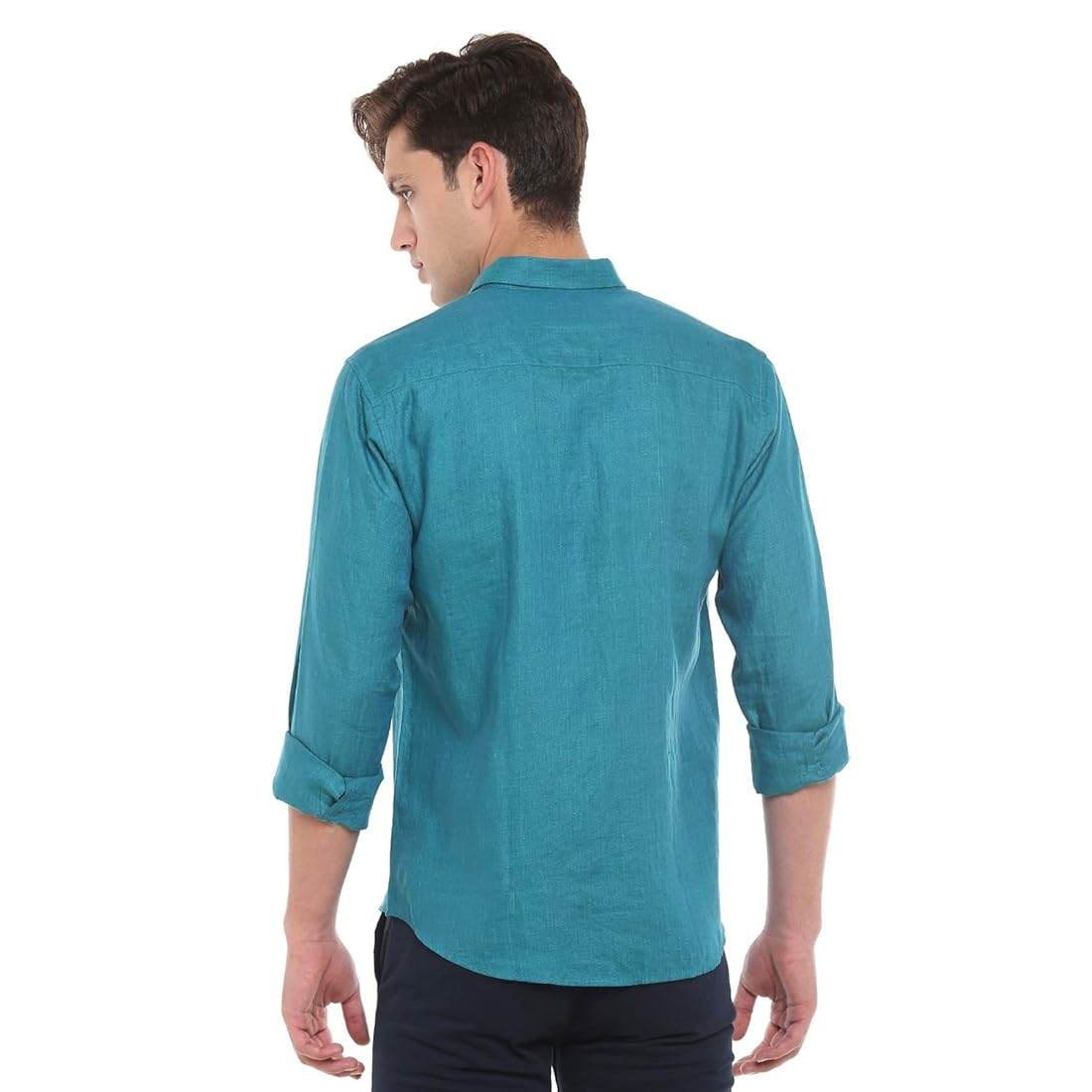Linen Club Sea Green Colour Pure Linen Casual Shirt