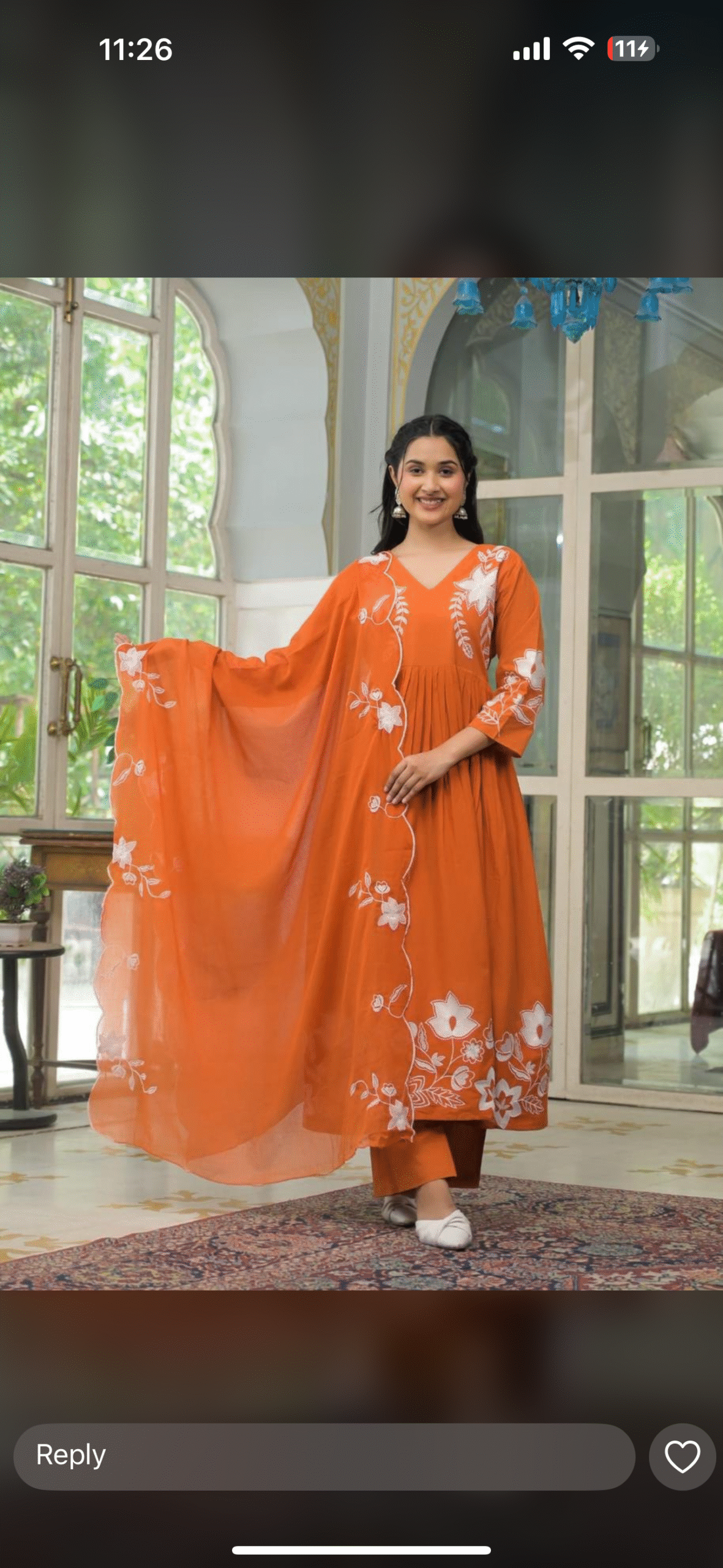 Be the first to review “orange Anarkali suit set with white embroidery and a matching dupatta.” Cancel reply