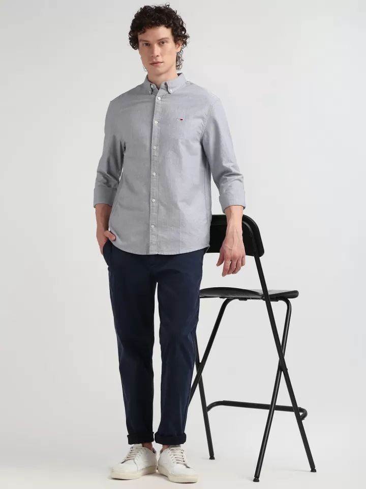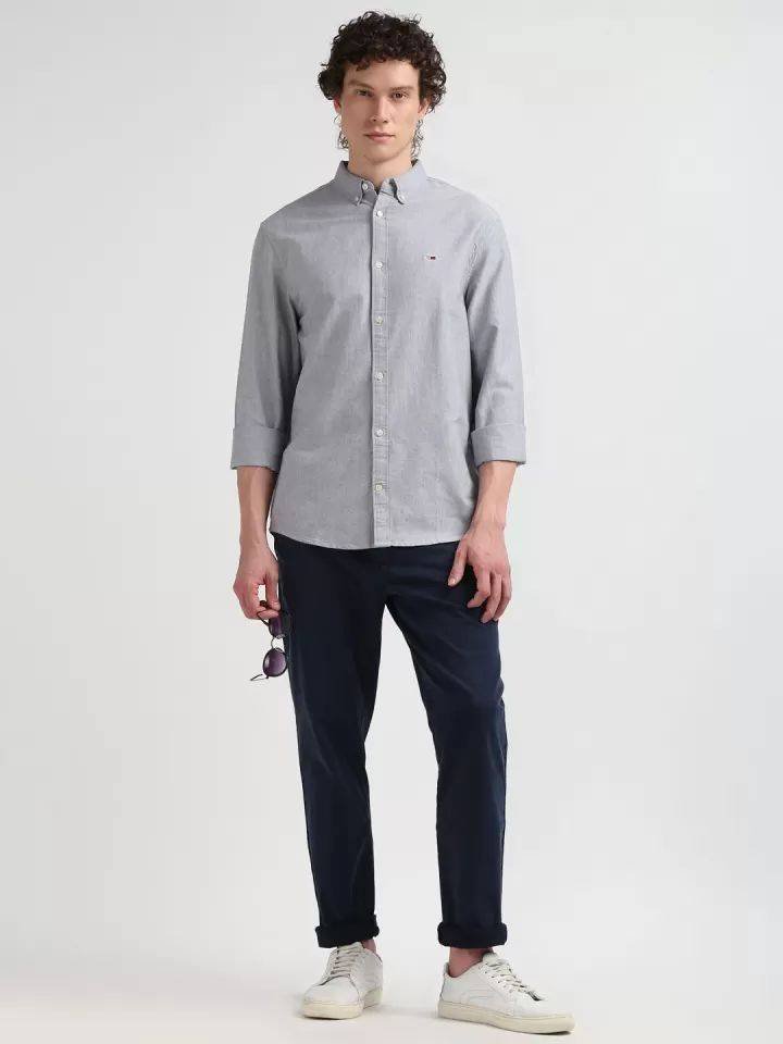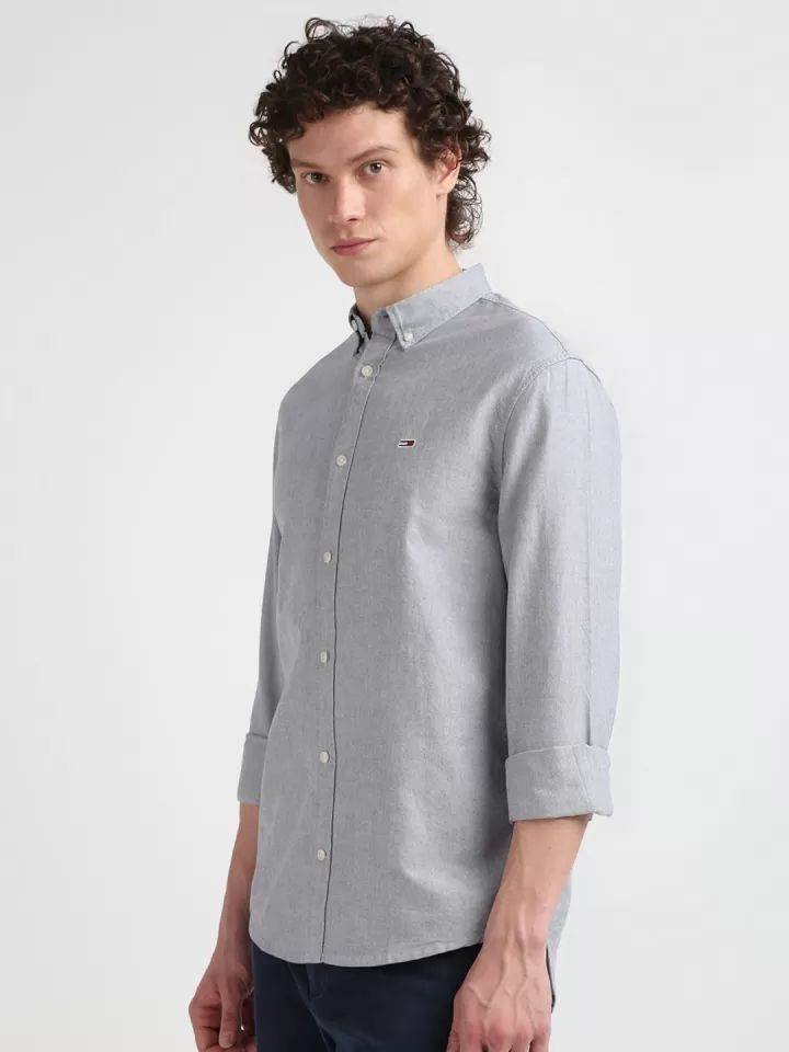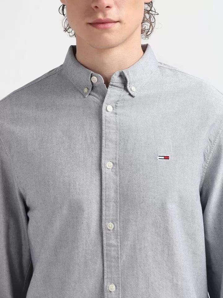 Grey solid opaque Casual shirt ,has a button-down collar, button placket, long regular sleeves, straight hem